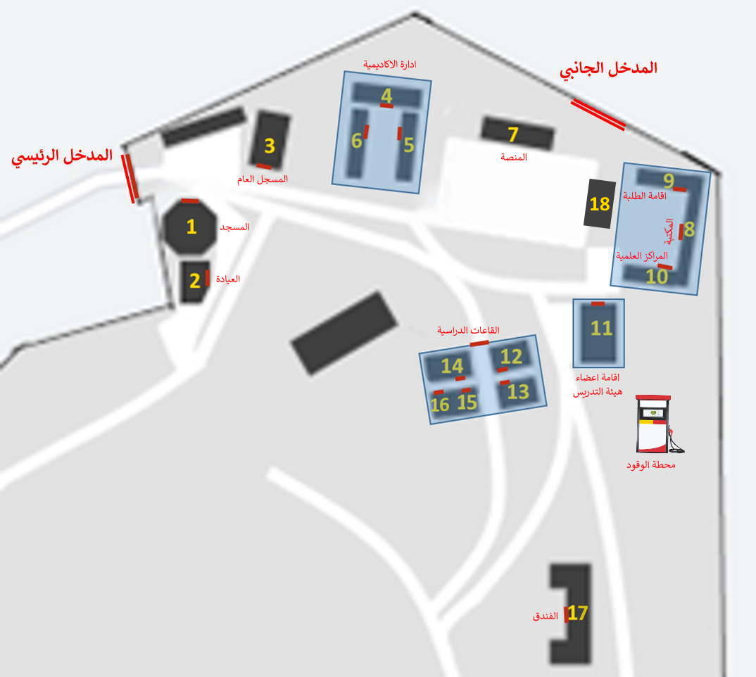 الرسم التوضيحي بالاسفل يوضح موقع مياني الاكاديمية