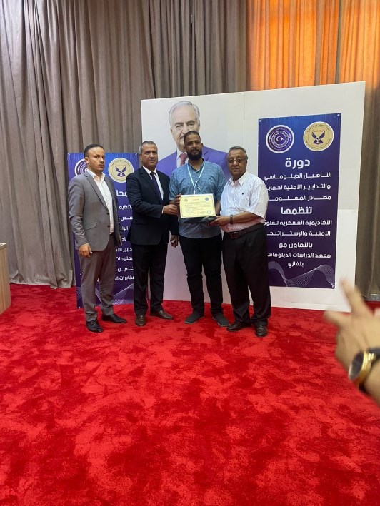 إنطلاقاُ من حرص القيادة العامة للقوات المسلحة على تدريب الكوادر الوطنية في شتى المجالات ، وبمختلف الإختصاصات ، لذا شهدت الأكاديمية العسكرية للعلوم الأمنية والإستراتيجية يوم الإثنين الموافق 22-7-2024.م ، بمقر الأكاديمية بالرجمة تخريج الدفعة الأولى للمشاركين؛ بدورة (التأهيل الدبلوماسي وحماية مصادر أمن المعلومات) ، والتي جرت بالشراكة مع معهد الدراسات الدبلوماسية بنغازي ،